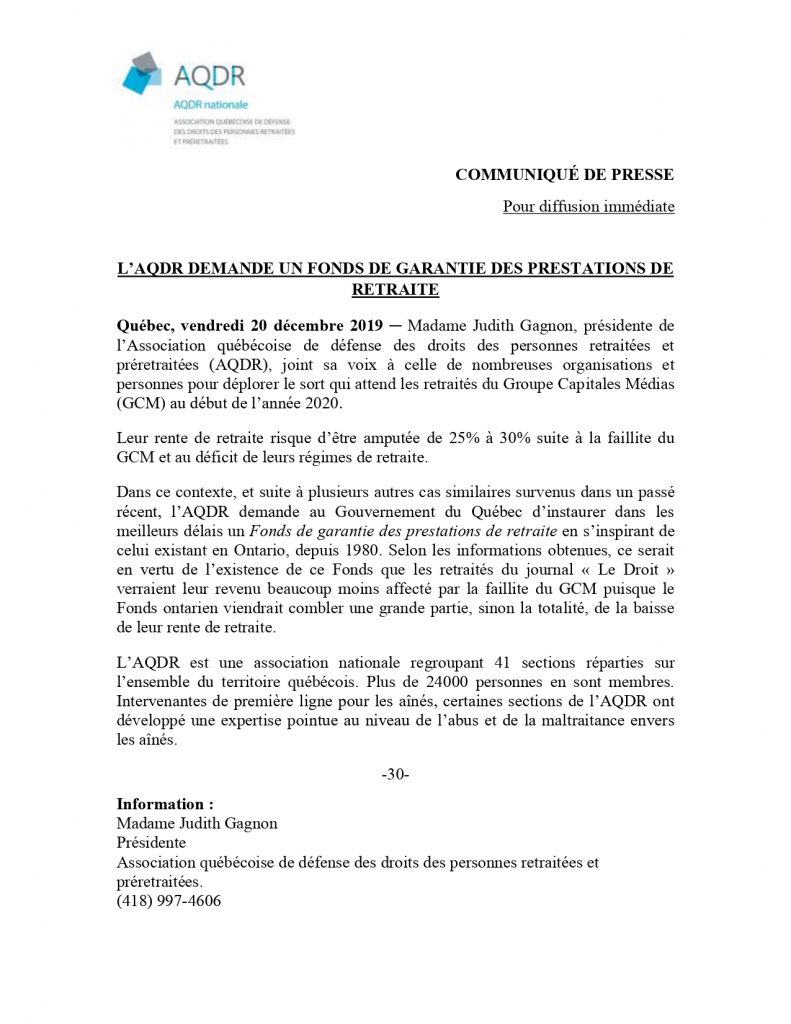 19 août 2020 – L’AQDR en faveur du plan d’action de Québec pour contrer une seconde pandémie de la COVID-19